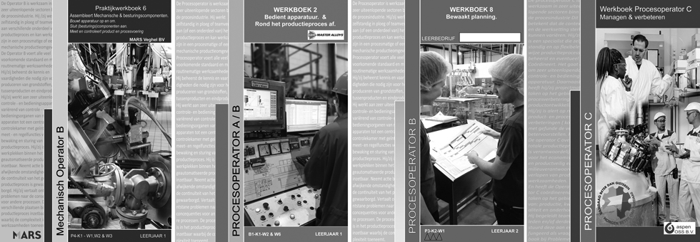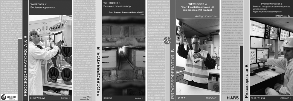 Praktijkwerkwerkboeken voor de procestechnische opleidingen Operator A, B en C. met de content in de look & feel van het bedrijf.